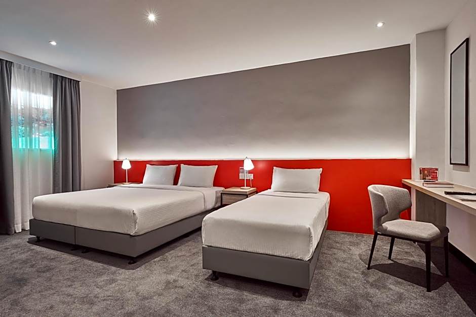 Featuring a window, this spacious family room includes air conditioning, cable TV and electric kettle.